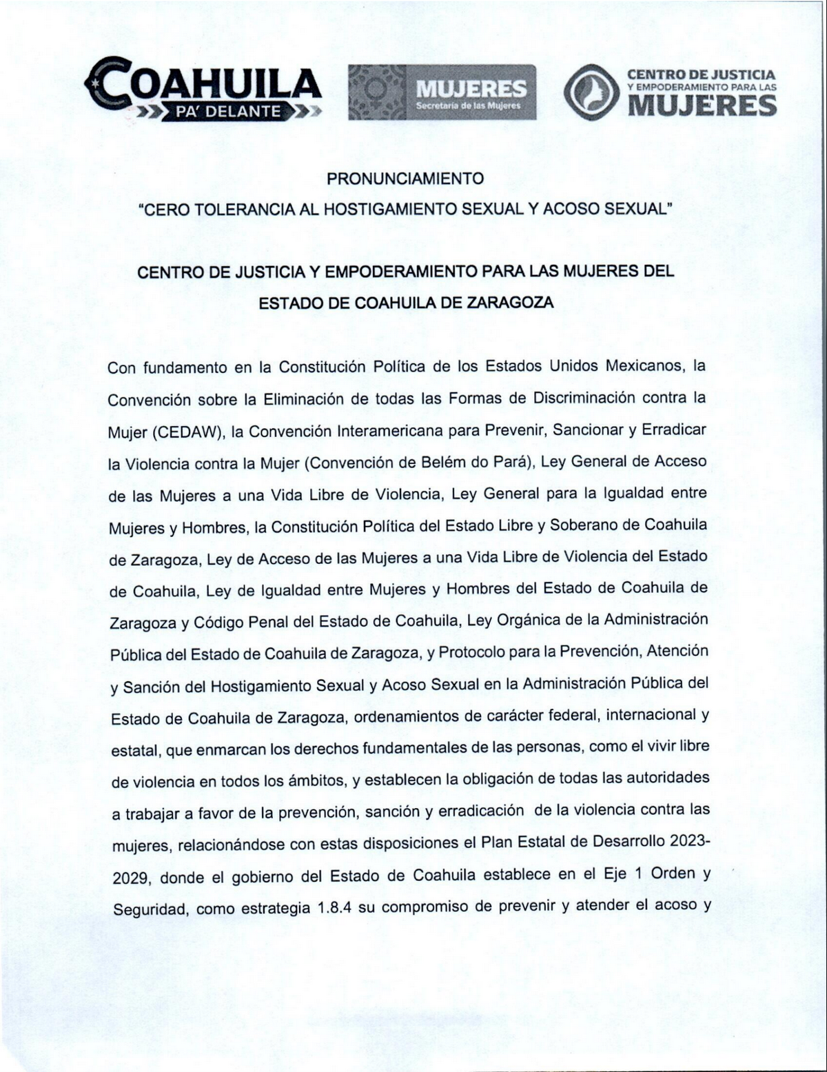 PROTOCOLO PARA LA PREVENCIÓN, ATENCIÓN Y SANCIÓN DEL HOSTIGAMIENTO SEXUAL Y ACOSO SEXUAL EN LA ADMINISTRACIÓN PUBLICA DEL ESTADO DE COAHUILA DE ZARAGOZA